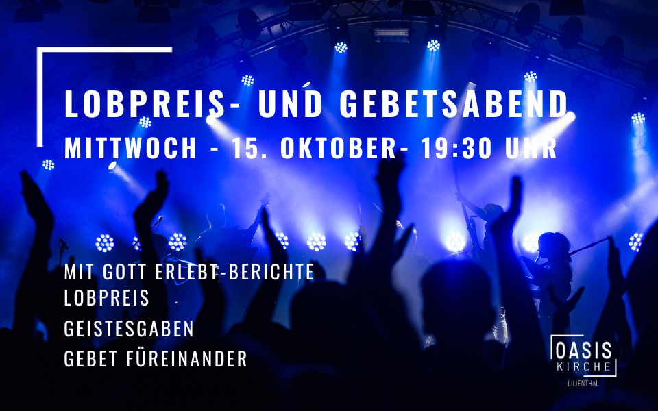 Du bist an diesem Abend herzlich eingeladen, Gottes Gegenwart zu erleben, mutmachende Zeugnisse zu hören und die Kraft des Heiligen Geistes im gemeinsamen Lobpreis und Gebet zu spüren! Wir treffen uns am Mittwoch, den 15. Oktober um 19:30 Uhr im Gemeindesaal. Sei gerne dabei!