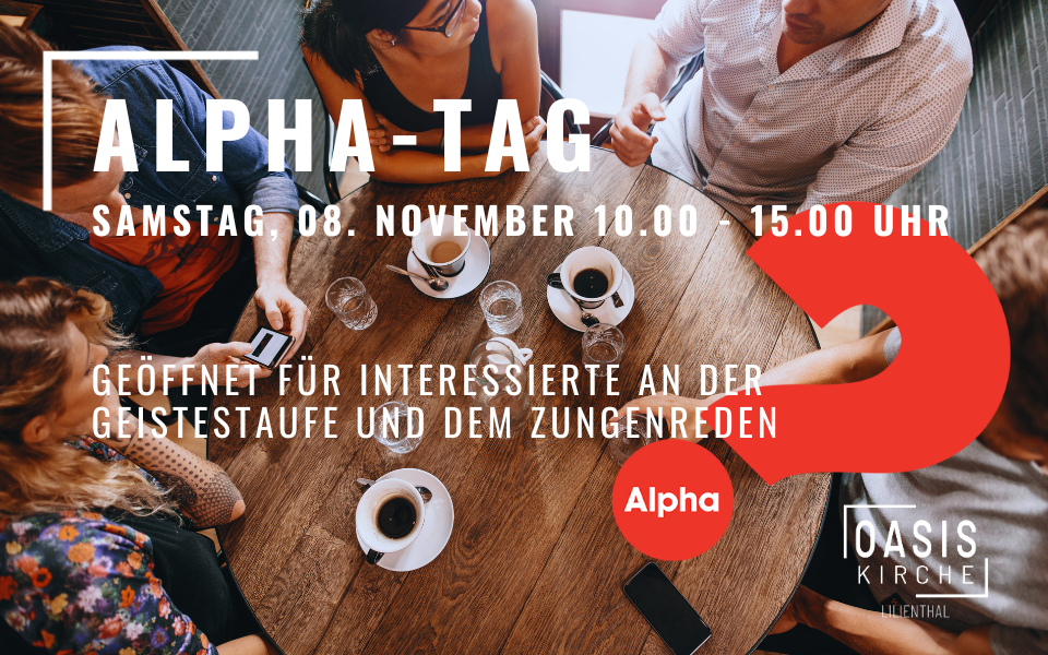 Nach den letzten bereichernden Wochen bei ALPHA, wollen wir uns am Samstag, den 08. November von 10:00 bis 15:00 Uhr mit der Geistestaufe und dem Zungenreden beschäftigen. Wir werden dieses Thema theoretisch betrachten und praktisch ausprobieren. Lass Dich überraschen, wie tief und weit Gottes Gegenwart und Zurüstung reichen kann! Wenn Dich dieses Thema interessiert, dann melde Dich gerne direkt bei Christina Blome (Leitung ALPHA) oder per Mail unter: info@oasiskirche.de an. Für Verpflegung ist gesorgt.
